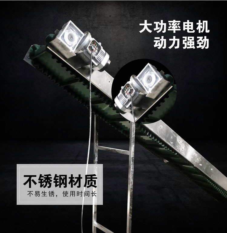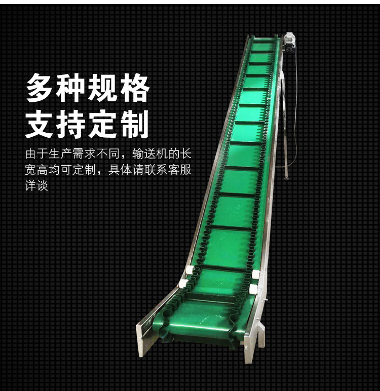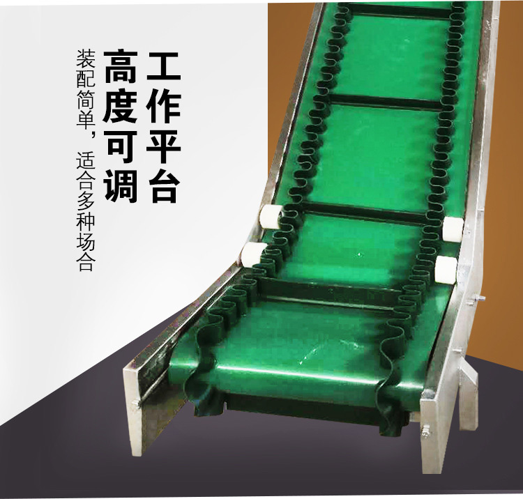 裙邊皮帶輸送機(jī)是在平形橡膠運(yùn)輸帶兩側(cè)粘上可自由伸縮的橡膠波形立式"裙邊",在裙邊之間又粘有一定強(qiáng)度和彈性的橫隔板組成匣形斗,對物料進(jìn)行連續(xù)輸送的設(shè)備??纱髢A角輸送甚至垂直提升散料。